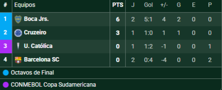 Tabla de Posiciones – Copa Libertadores – Fase de Grupos – Zona D – Fecha 2