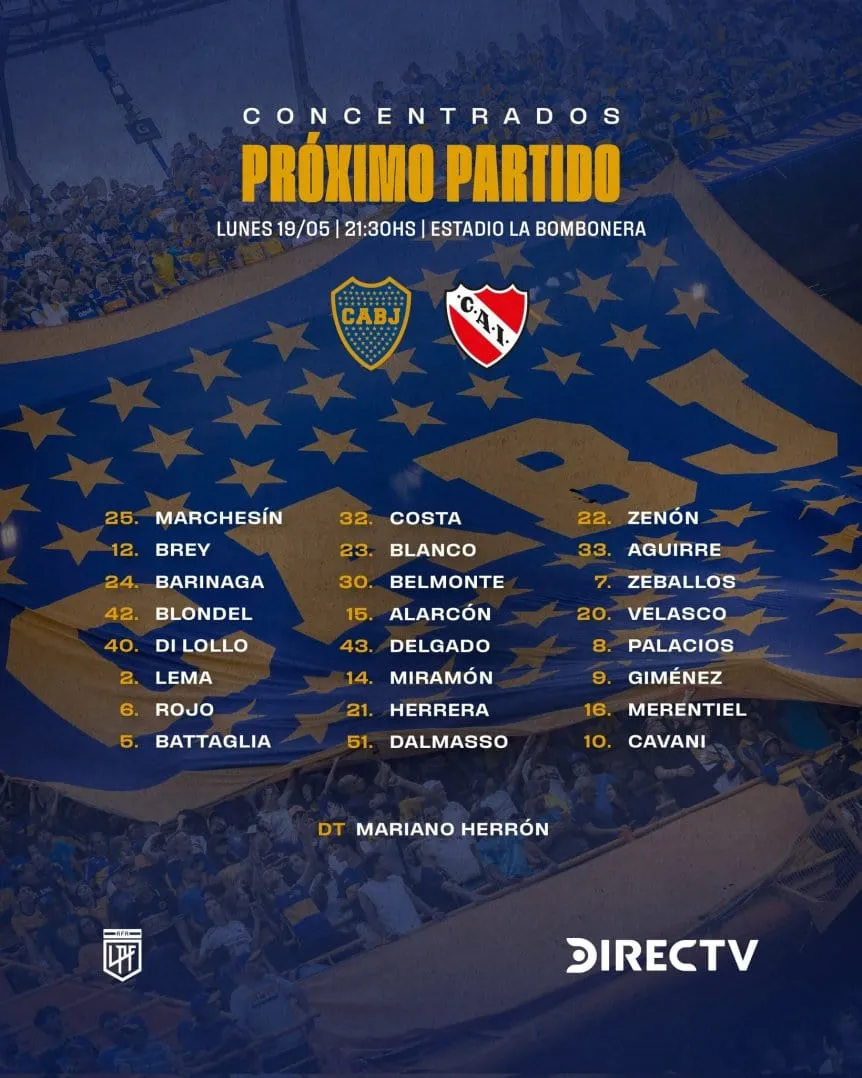 Entre los convocados de Boca Juniors por los cuartos de final del Torneo Apertura 2025 están Ander Herrera y Edinson Cavani. Ambos se recuperaron de sus respectivas lesiones y están a disposición de Mariano Herrón.