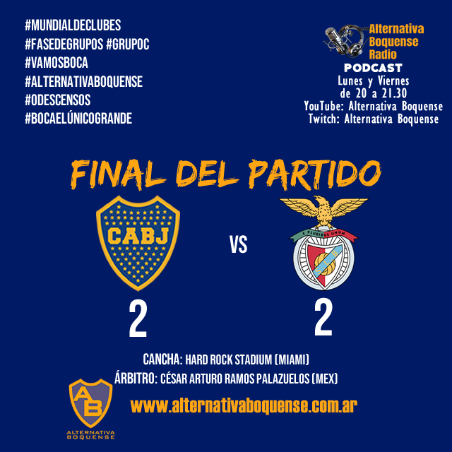 La próxima fecha del Grupo C para Boca Juniors será el viernes 20 de junio, ante el Bayern Múnich, desde las 22:00 (ARG), mientras que Benfica jugará con el Auckland City neozelandés, a las 13 (ARG).