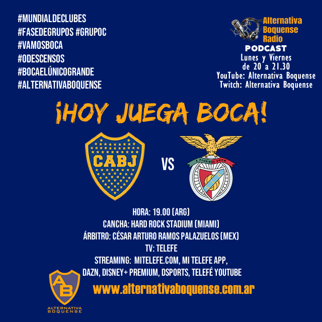 Boca Juniors inicia su camino en el Mundial de Clubes ante Benfica, desde las 19 de Argentina, por la primera fecha del Grupo C. Con entradas agotadas por los BOSTEROS, el Hard Rock Stadium de Miami será punto de partida de lo que será un encuentro decisivo para las aspiraciones del equipo de Miguel Ángel Russo, quien comienza su tercer ciclo en el Club.