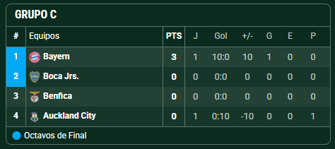 Tabla de Posiciones – Mundial de Clubes – Fase de Grupos – Grupo C