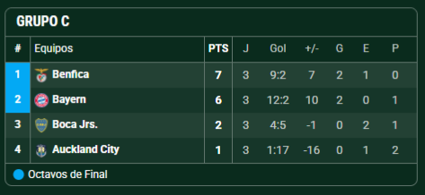 Tabla de Posiciones – Mundial de Clubes – Grupo C – Fecha 3