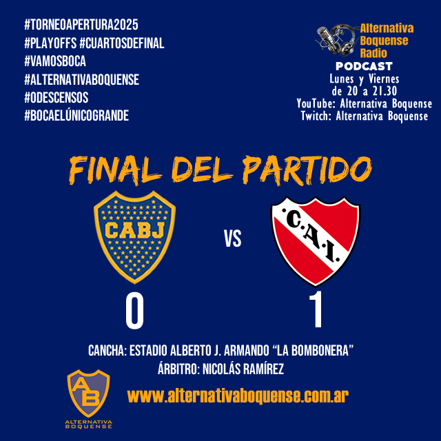Boca Juniors, en un partido de ida y vuelta, cayó ante Independiente por 1-0, y el equipo de Avellaneda se clasificó a semifinales del Torneo Apertura. Esta derrota profundizó la crisis en el Xeneize, que nuevamente se fue del campo de juego recibiendo las palabras de La Bombonera, como contra Lanús: «Que se vayan todos» y «La Comisión se va a la p… que la parió».