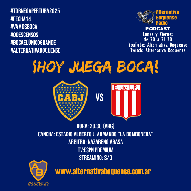 Con el objetivo de seguir como único líder de la Zona A, ya clasificado a los playoffs del Torneo Apertura 2025 de la Liga Profesional de Fútbol, y liderando la tabla anual, que hasta el momento le permite clasificar a la Copa Libertadores 2026, Boca Juniors recibe desde las 20:30 horas, a Estudiantes de La Plata en Alberto J. Armando «La Bombonera», por la Fecha 14 del certamen, con el arbitraje de Nazareno Arasa.