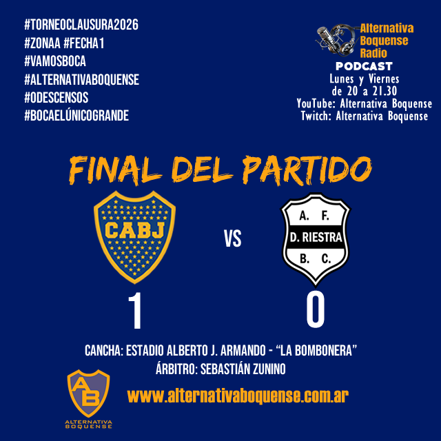 Boca Juniors inició su camino en el Torneo Apertura 2026 con una victoria que le costó. En La Bombonera, el equipo de Claudio Úbeda le ganó por 1-0, con gol de cabeza de Lautaro Di Lollo en el segundo tiempo, a Deportivo Riestra. partido correspondiente a la Fecha 1 de la Zona A, con el arbitraje de Sebastián Zunino.