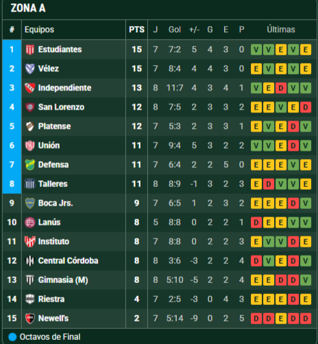 Tabla de Posiciones – LPF – Torneo Apertura 2026 – Zona A – Fecha 8