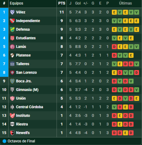 Tabla de Posiciones – Liga Profesional de Fútbol – Torneo Apertura 2026 – Zona A – Fecha 5