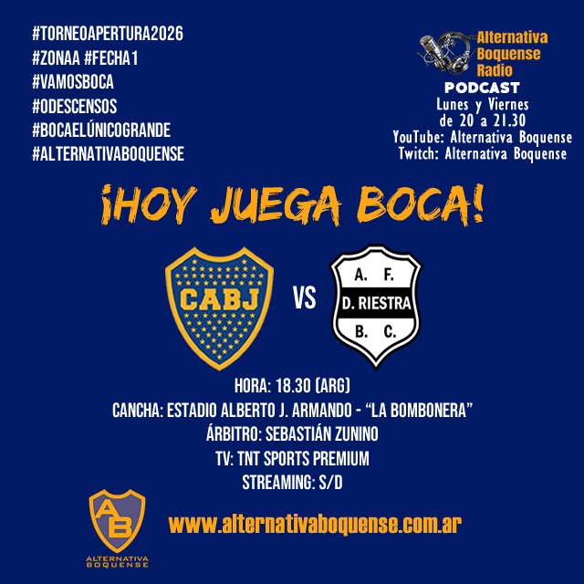 Boca Juniors comienza el Torneo Apertura 2026, desde las 18.30 ante Deportivo Riestra, en La Bombonera, con arbitraje de Sebastián Zunino.