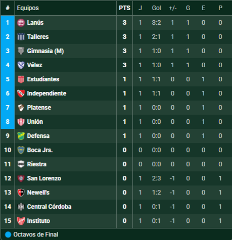 Tabla de Posiciones – Torneo Apertura 2026 – Zona A – Fecha 1