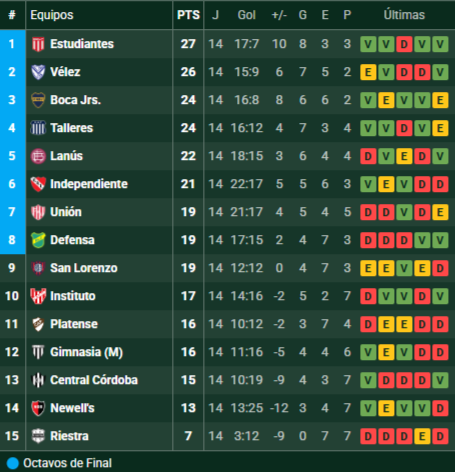 Tabla de Posiciones – LPF – Torneo Apertura 2026 – Zona A – Fecha 16