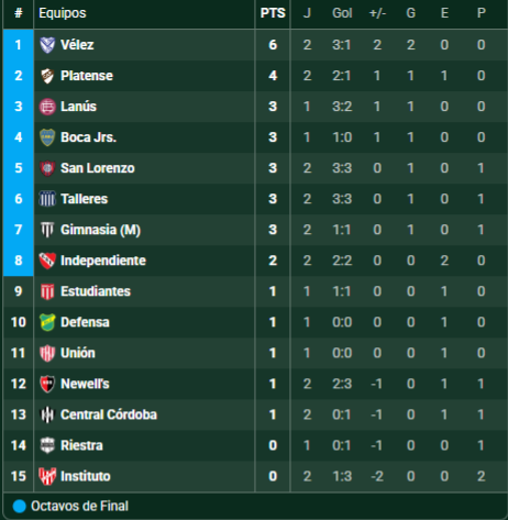 Tabla de Posiciones – LPF – Torneo Apuertura 2026 – Zona A – Fecha 2