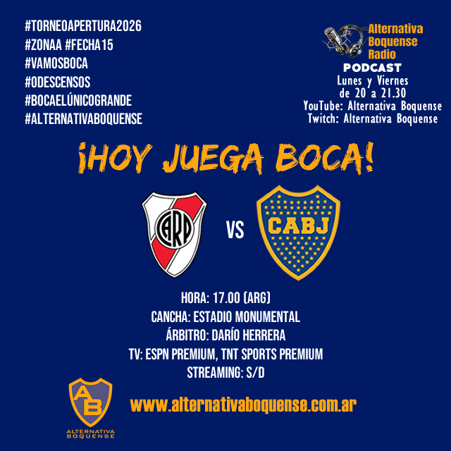 Boca, desde las 17.00 (ARG),visita a RiBer en el Monumental, con arbitraje de Darío Herrera, en una nueva edición del Superclásico del fútbol argentino. El Xeneize, no conoce la derrota hace 12 partidos. El equipo de Núñez tiene una racha de nueve partidos invicto y no perdió desde la llegada de Eduardo Coudet.