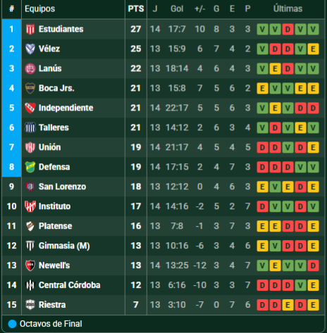Tabla de Posiciones – LPF – Torneo Apertura 2026 – Zona A – Fecha 15