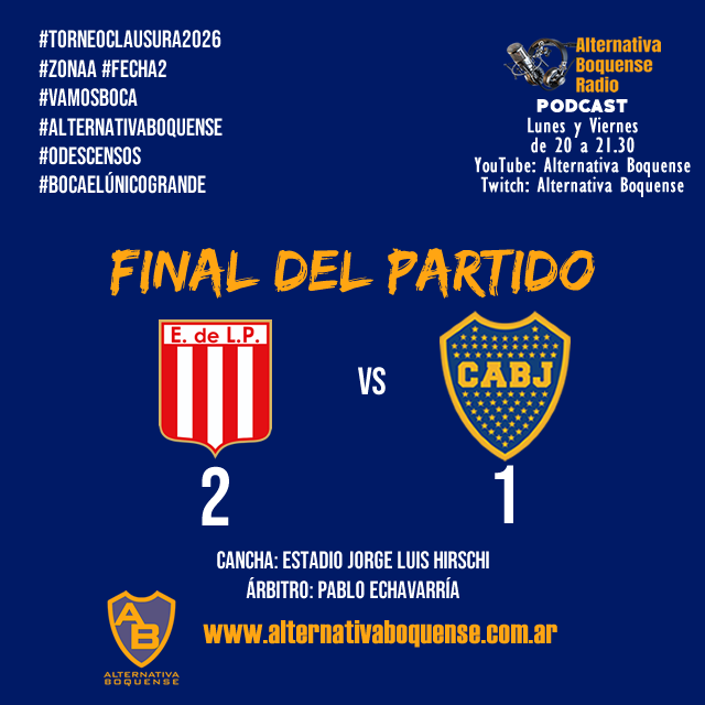 Boca Juniors cayó ante Estudiantes en La Plata por 2-1 por el partido correspondiente a la Fecha 2 de la Zona A del Torneo Apertura 2026 con arbitraje de Pablo Echavarría.