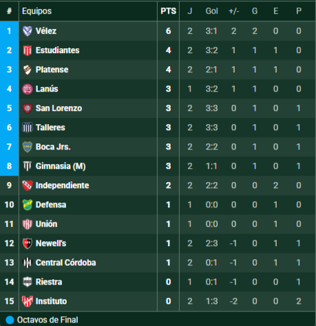 Tabla de Posiciones – LPF – Torneo Apertura 2026 – Zona A – Fecha 2