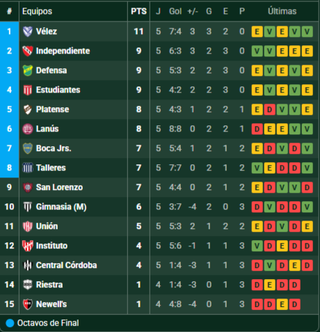 Tabla de Posiciones – Liga Profesional de Fútbol – Torneo Apertura 2026 – Zona A – Fecha 5