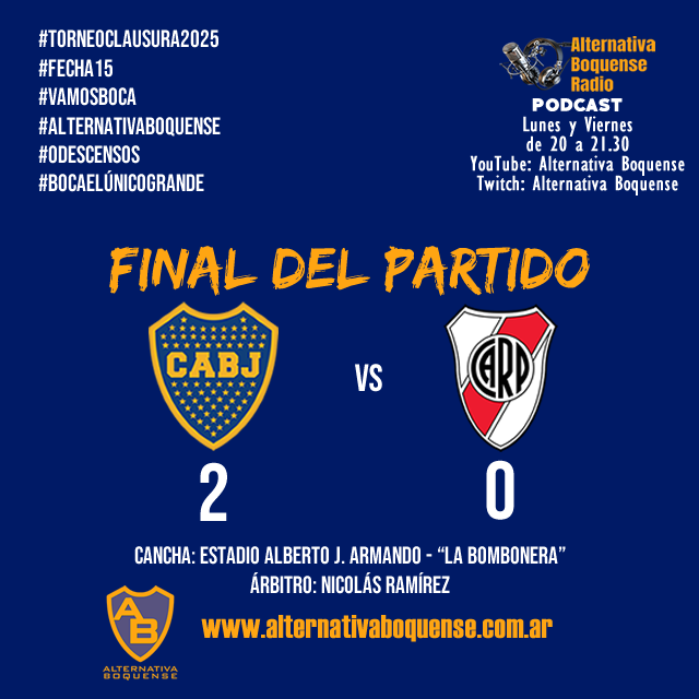 Boca Juniors derrotó 2-0 a RiBer Plate en una nueva edición del Superclásico, en La Bombonera, por la fecha 15 del Torneo Clausura 2025, con el arbitraje de Nicolás Ramírez. Los goles de Exequiel «Chango» Zeballos y Miguel Merentiel, le dieron al Xeneize no solo el triunfo, sino también el pasaje directo a la fase de grupos de la Copa Libertadores 2026.