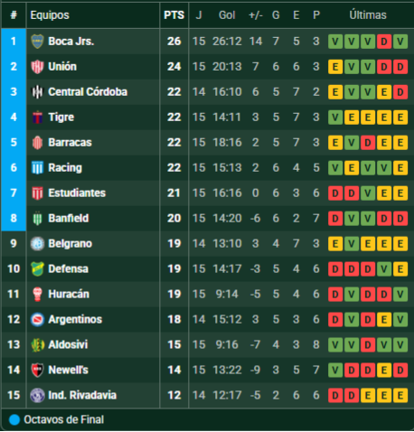 Tabla de Posiciones – Torneo Clausura 2025 – Zona A – Fecha 15