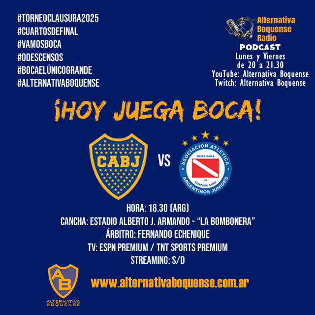 Boca Juniors con cinco triunfos consecutivos se consolidó como uno de los candidatos al título. La victoria ante Talleres por octavos de final le dio el pase a cuartos ante Argentinos Juniors. Hoy, desde las 18.30, en La Bombonera, y con arbitaje de Fernando Echenique, ambos irán por el pase a semis.