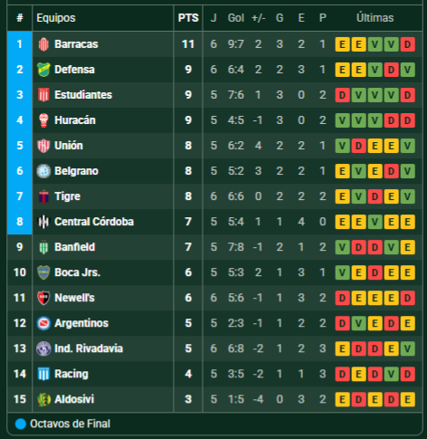 Actualmente, Boca se ubica en el décimo puesto de la Zona A del Torneo Clausura 2025, a un punto del octavo, que es el último clasificado a los octavos de final. En la tabla anual, ya regresó a la zona de clasificación para la próxima Copa Libertadores.