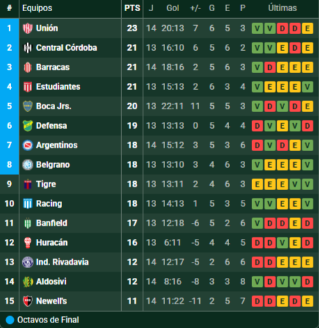 También el Pincha piensa en la tabla anual, con 42 unidades se encuentra 12° a tres de Tigre, el último de los clasificados a la Copa Sudamericana.