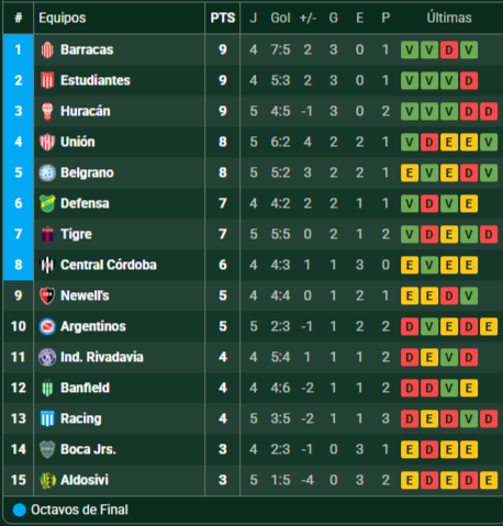 Tabla de Posiciones – Torneo Clausura 2025 – Zona A – Fecha 5