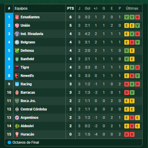 Tabla de Posiciones – Torneo Clausura 2025 – Zona A – Fecha 3