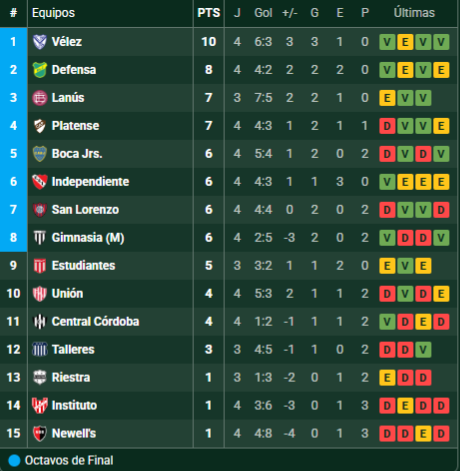 Tabla de Posiciones – Liga Profesional de Fútbol – Torneo Clausura 2026 – Zona A – Fecha 4